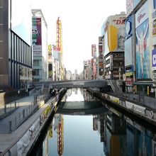 大阪の観光名所のひとつで、大阪市内の中心地を流れる道頓堀川に架かる橋です。阪神タイガースの優勝やサッカー日本代表が勝利したときなどに橋の上から飛び込むことでも有名な橋です。また、グリコの大きな看板が直ぐ脇にあるので記念写真の撮影スポットとしても人気の場所なので、ミナミに行ったら立ち寄ってみてくたさい