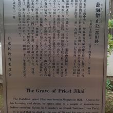 上野寛永寺の境内、本堂の右側には幾つかの石碑等の記念碑があります。その中の一つに慈海僧正墓があります。墓石には聖観音菩薩が彫られ墓の様には見えません。それに一体、慈海僧正とは誰なのかも知りませんでした。寛永寺の学頭を務めた格の高い僧だそうですが、墓は大したことはありませんでした。