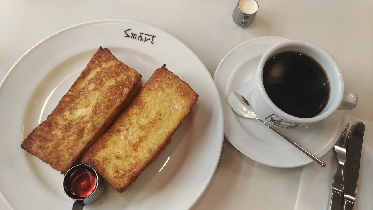 寺町商店街の一角にある老舗の喫茶店。イノダコーヒーよりも古く、1932年の創業だそうです。店頭にあるドイツ製の古いマシンで焙煎しているようなので、お店に入った瞬間から珈琲の匂いが漂っています。外国人や年配の人も多く、老若男女、古今東西問わず愛されているようでした。朝は1Fスペースしかオープンしていないので、9時過ぎにはお店の外まで行列ができていました。