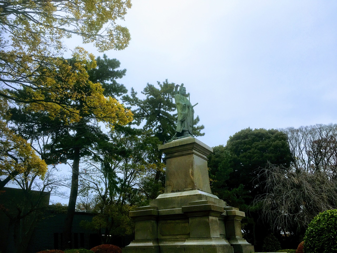 ここの公園は桜に他には、公園の名前の由来にもなった、大老 井伊掃部上直弼の大きな銅像や、滝の流れる日本庭園があります。