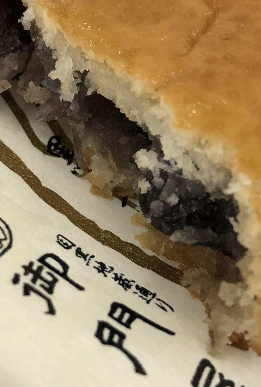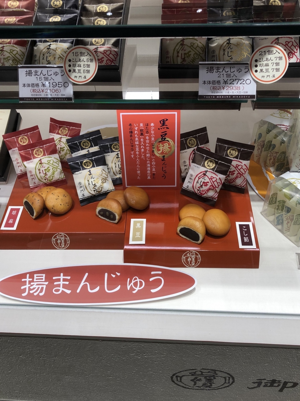 最初に目に付いたのが、「揚げまんじゅう」だったので、コレを買うことに…こし餡とごまがあって、新たに黒豆が加わったという…そこで、新製品の黒豆を買うことにした