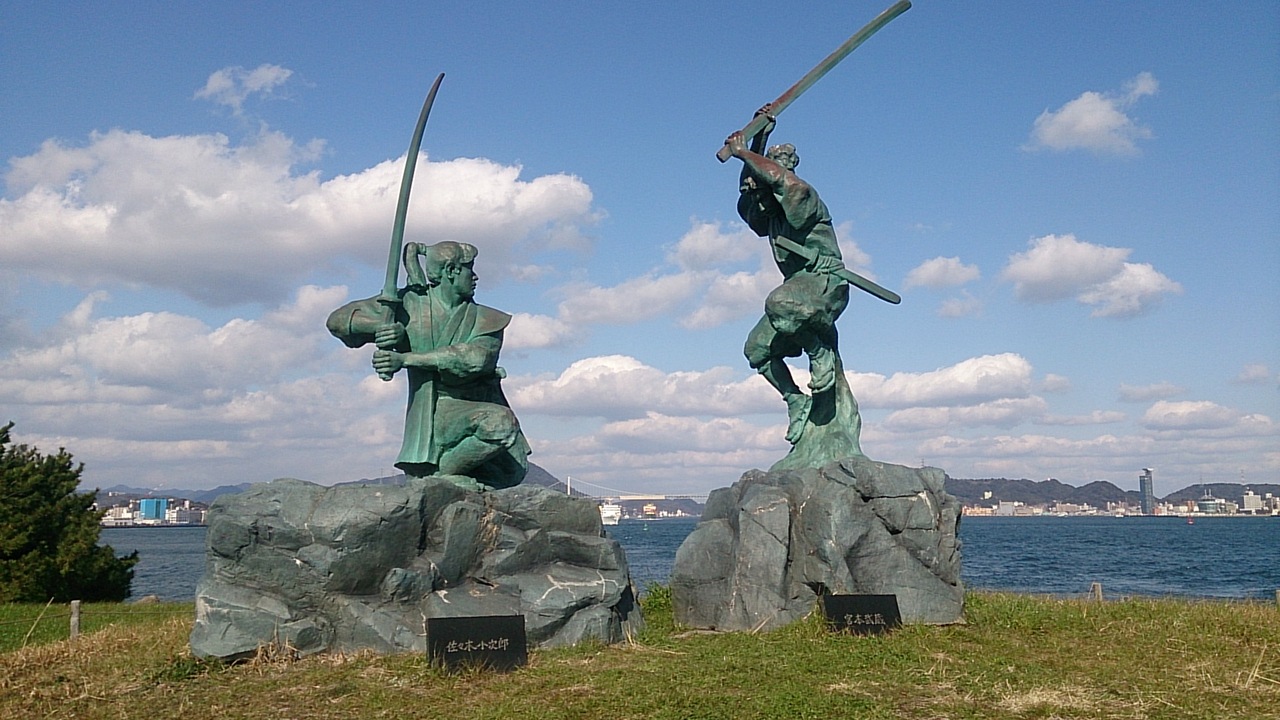 2月に門司港観光をした際に、ちょうどいい時間帯に巌流島へ行く船があったので、せっかくの機会にと思い、行って来ました。島は遊歩道が整備されており、その遊歩道の先に武蔵と小次郎の決闘の様子を模した像があります(そこそこ大きいです)。小さい島であるため、歩き回るのにさほど時間を要しませんでした。また、関門海峡の真ん中に位置していることから、九州と本州の両方を眺めることができます。