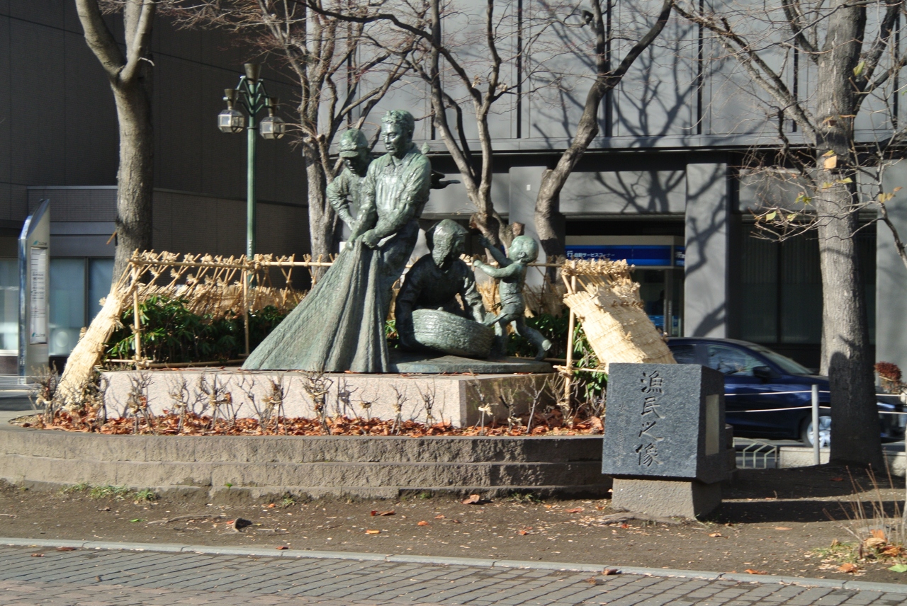 大通り公園7丁目の北側にある銅像です。漁を生業とするひとたちを表現した力強い像です。男の人、女の人、子供の像もあるところが特にいいと思います。外国人観光客のカップルが長い時間、熱心にこの像の写真を撮っていました。