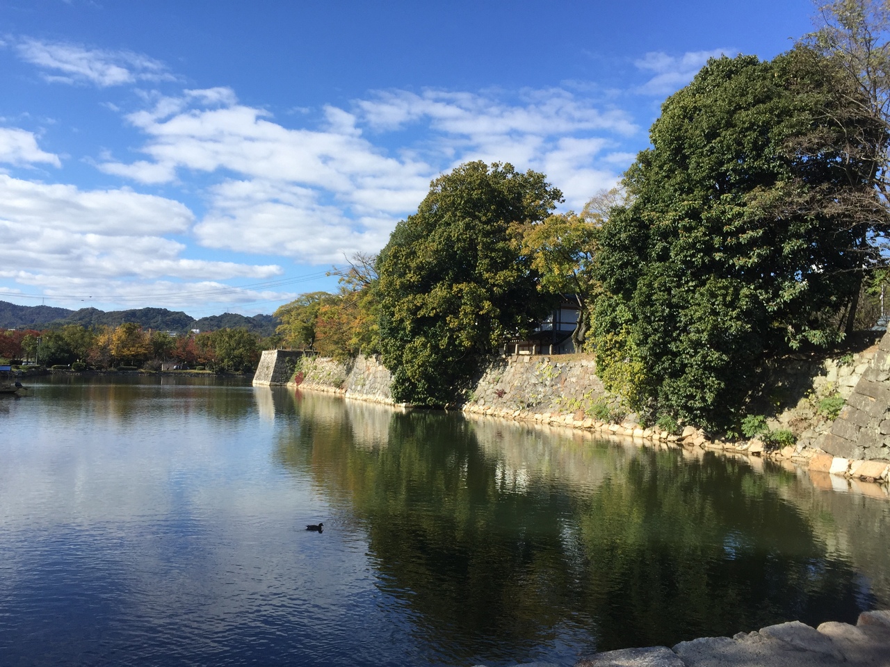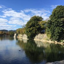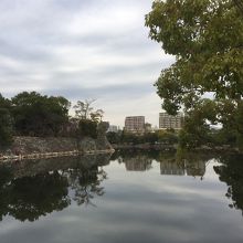 広島城の本丸および二の丸を囲むお堀です。残っている石垣と織りなす景観は素晴らしいです。お堀を渡るには、紙屋町側の表御門と、国の合同庁舎側の裏御門からしか行けません。二の丸に復元された3つの櫓からは、敵が堀を渡ってきても、槍や弓で対抗できるような穴が空いていました。