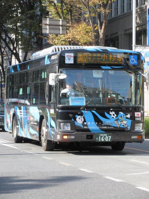 武蔵小杉の駅からバスを利用しました。川崎市市民ミュージアムまでです。バスターミナルでバスを待っていたら「川崎フロンターレ」のラッピングバスを見かけました。確かにこの街にはフロンターレの旗とかもはためいていて、全体で盛り上げているんだなと実感しました。いいことですね。