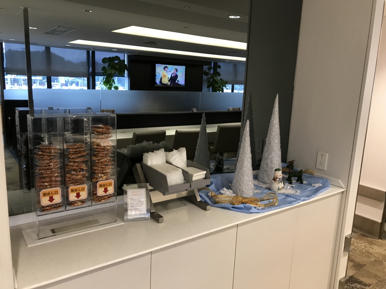 熊本空港のカードラウンジで、場所は保安検査前のエリアです。