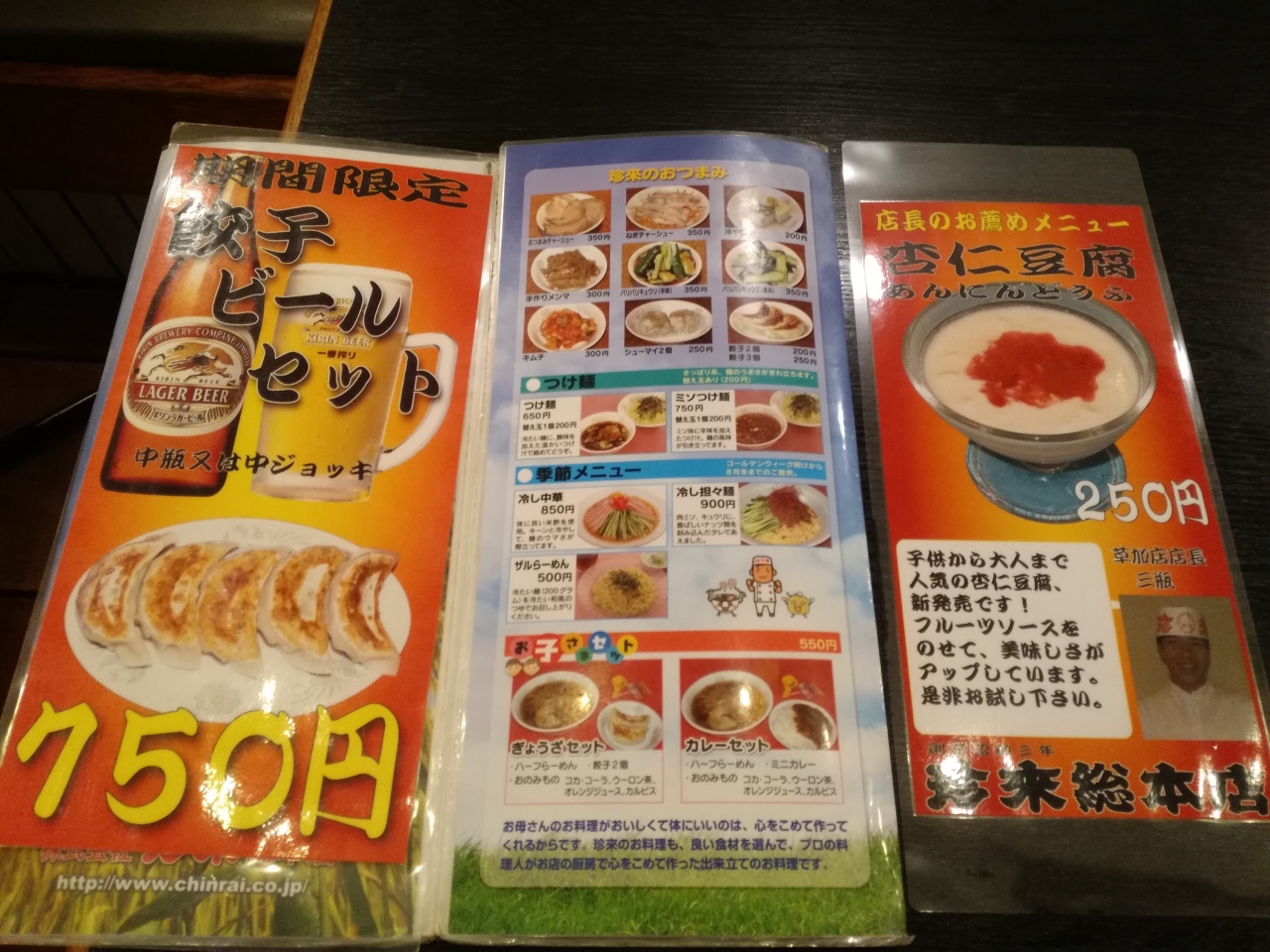 ラーメン 550円と、餃子3個 250円で 計800円。