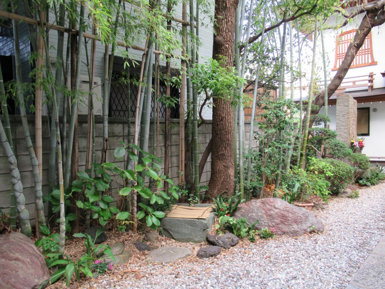 広くはないが背の高い竹が生えた植え込みなどがある寺院です