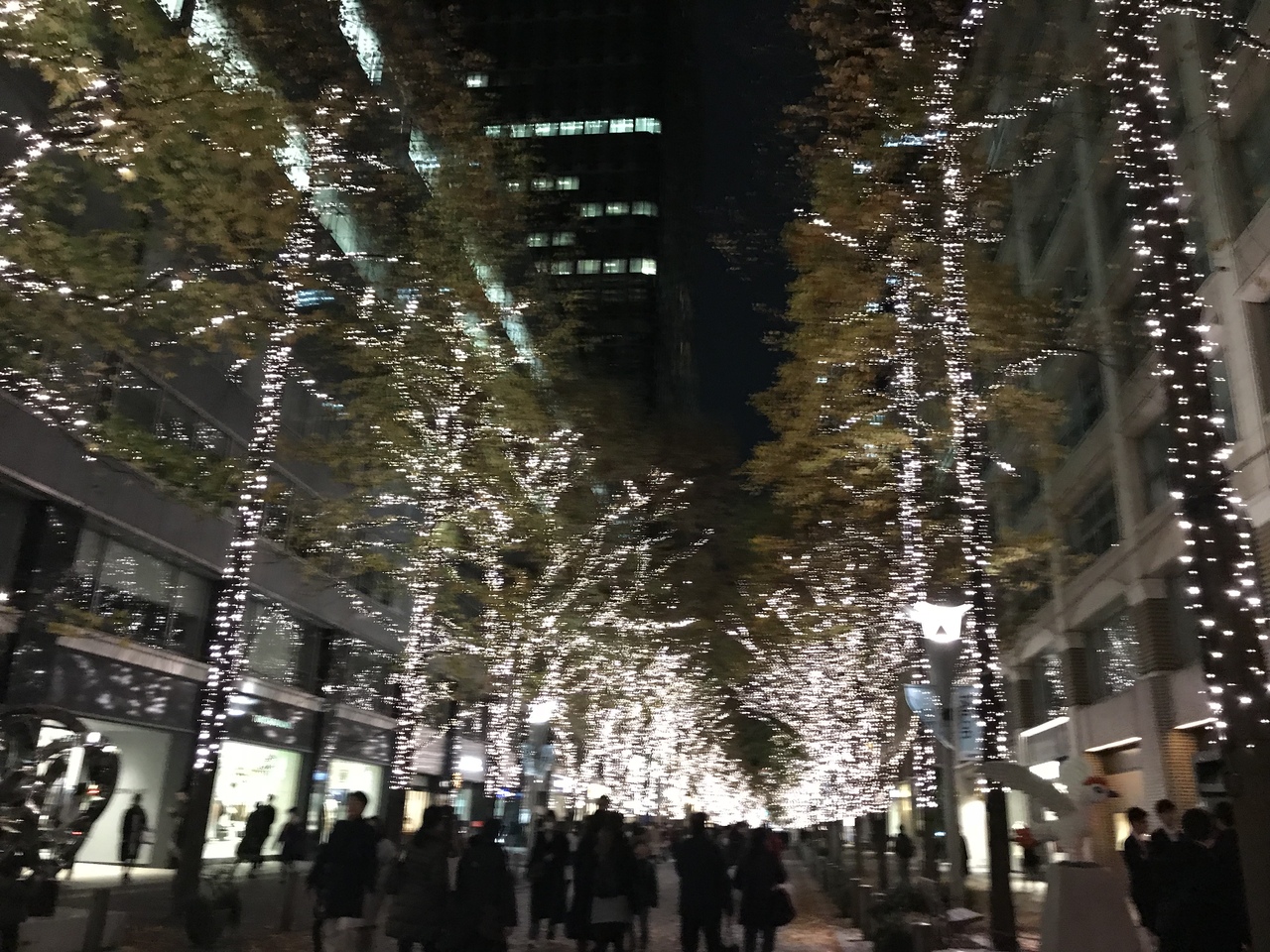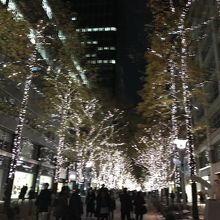 ビジネス街ですが、お洒落なショップやブランドのお店がたくさん並んでいます。この時期はイルミネーションがとてもきれいです。