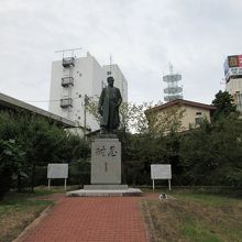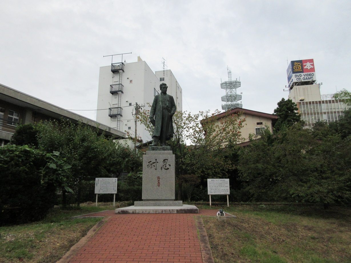 鶴ヶ城の見学を終えて北西方向に歩いていくと、雰囲気のある商家の建物を利用したカフェなどの集まる一角がありました。そのランドマーク的存在として整備されているのが、こちらの野口英世青春広場です。広場の奥まったところには青春時代を会津で過ごした野口英世の像が立っていました。私が訪れた時には訪れる人もまばらでゆっくり見学できました。