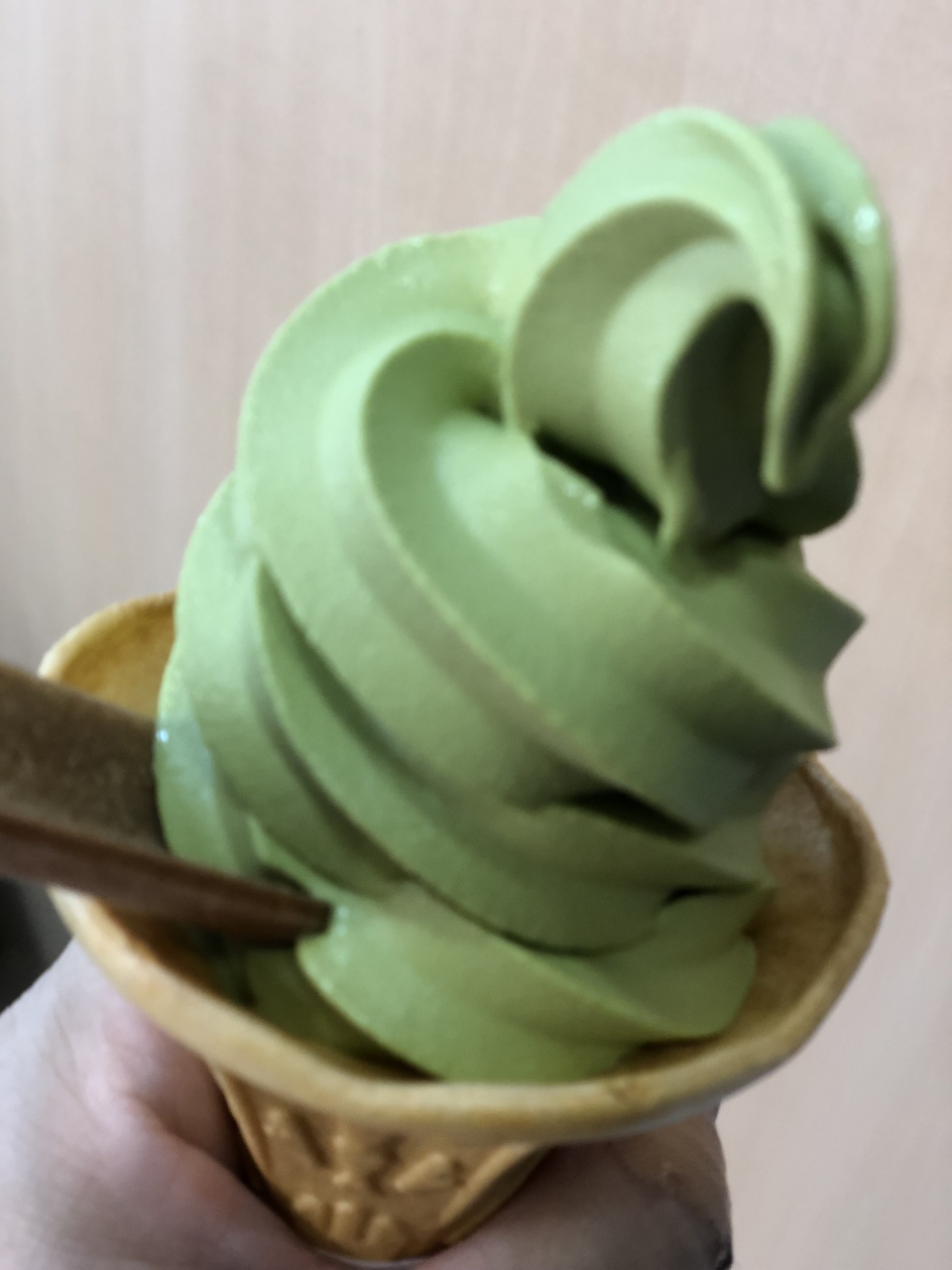 抹茶のソフトクリームを食べました。他にも抹茶の飲み物やパフェ類まであって種類は多いです。ただ、椅子などはありません。この店のちょうど裏側がエスカレーターの上り口になっていてちょっとしたスペースがあるので、そこで頂きました。