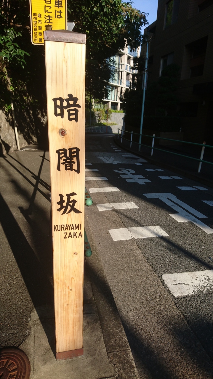 長伝寺から北にかなりの傾斜で下っていく暗闇坂を通りました。今でも樹木が茂っていますが、かつては樹木で暗闇になるほどだったため、この名前が付いたそうです。オーストラリア大使館の前を通る坂ですが、狭くて大きくカーブしているので自動車が来ると危険でした。