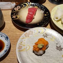 乗るはずだったJAL便が何と機材未到着のため4時間と大幅遅延したため、1500円のミールクーポンをもらう。食事はラウンジでもできるのでサクッと簡単に食べれるものないかな~とみているとこちらの寿司屋に行き当たった。回転寿司と考えると質的にはまあまあの水準にあるのだが、値段は高い。1500円では何個も食べられなかった。