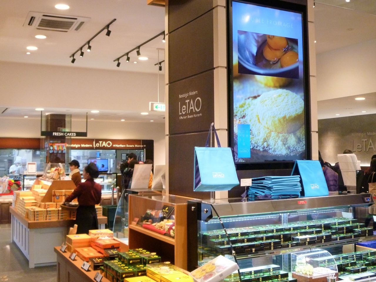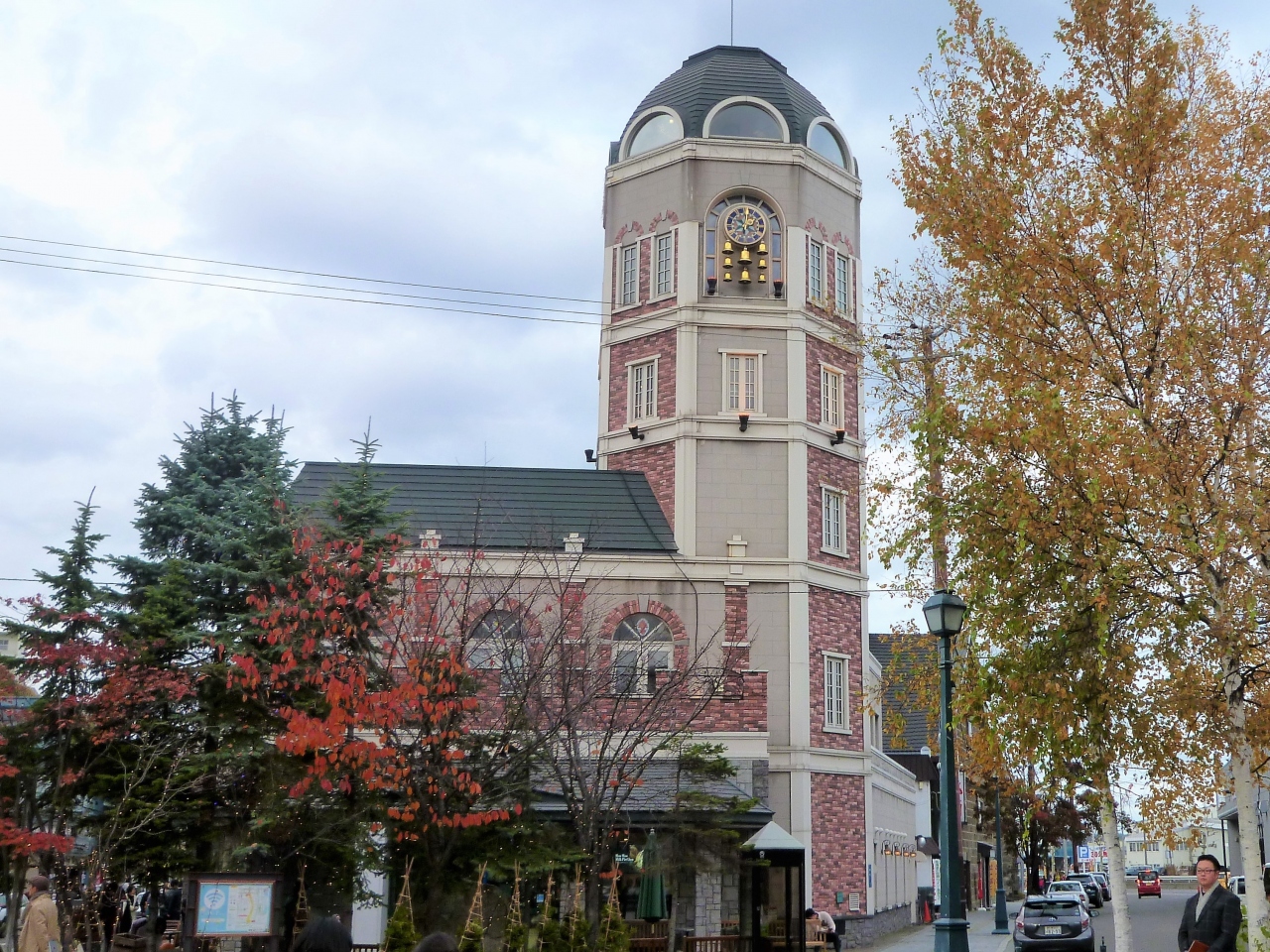 堺町交差点で堺町通り商店街を見ると真っ先に`ルタオ本店`がありました。始めてなので風景から印象に;六角塔で見上げる時計台が! お城or教会?(外国観光客がこれをバックに記念写真を)で中に入ると[小樽洋菓子舗ルタオ本店]でした(^^)。広い洋菓子で1階は売場で2階はカフェ店でした。自由時間が〆切で観光バスに戻ったらガイドさんは`生ドゥーブルフロマージュは有名ですよ!`