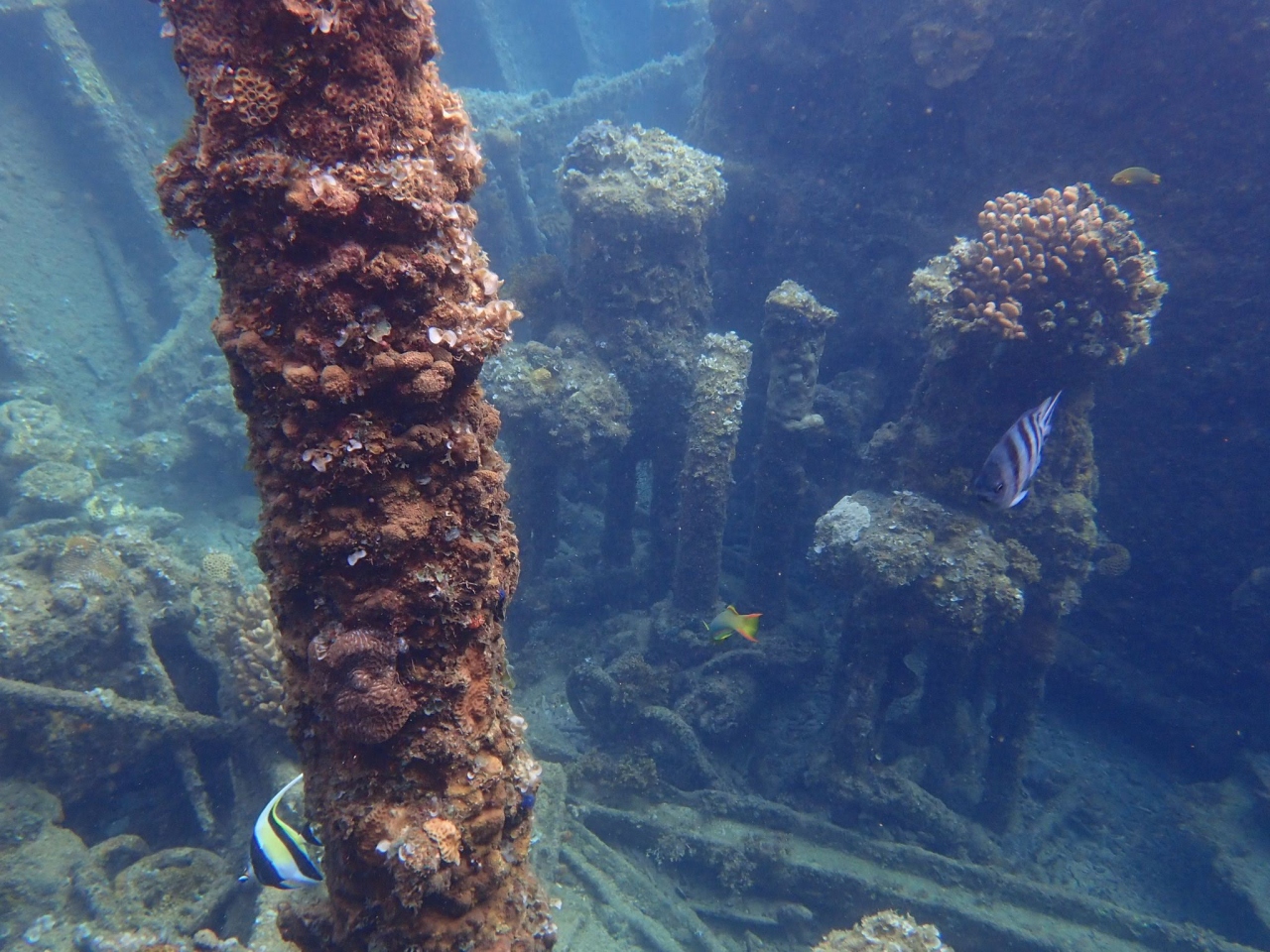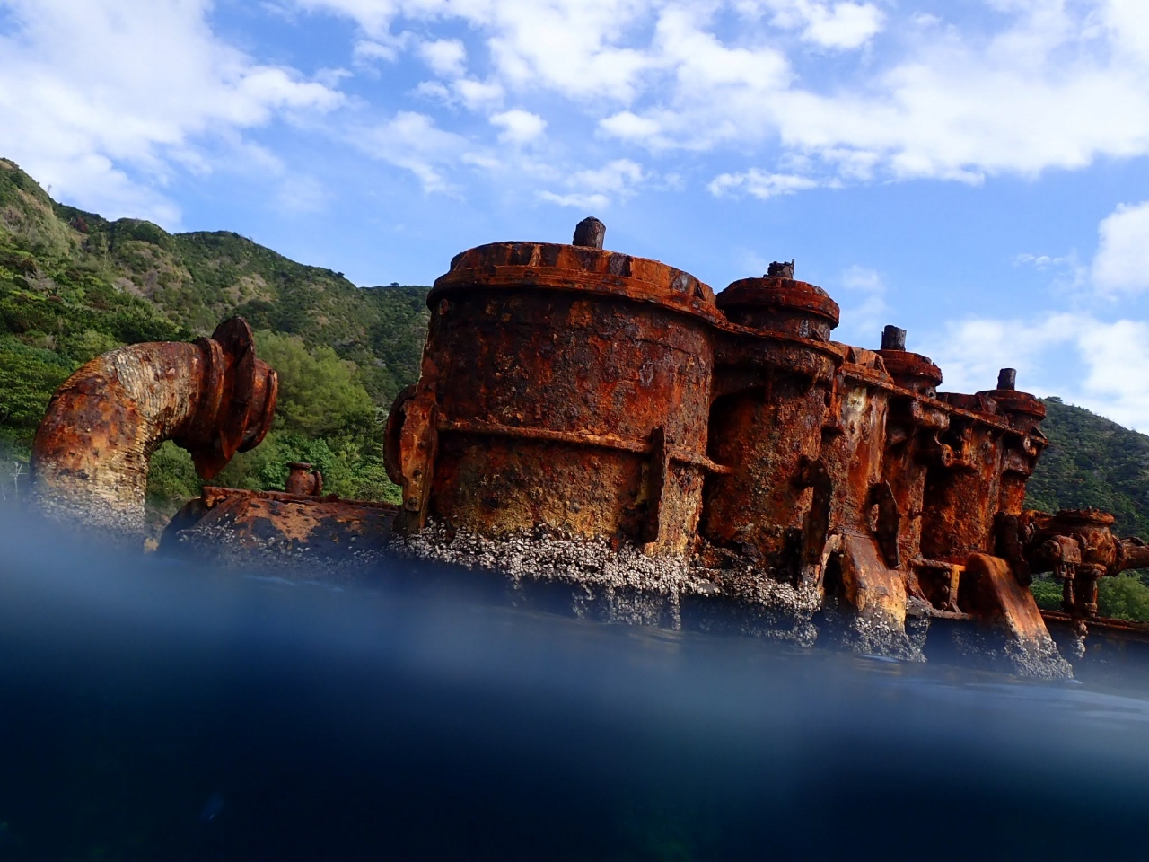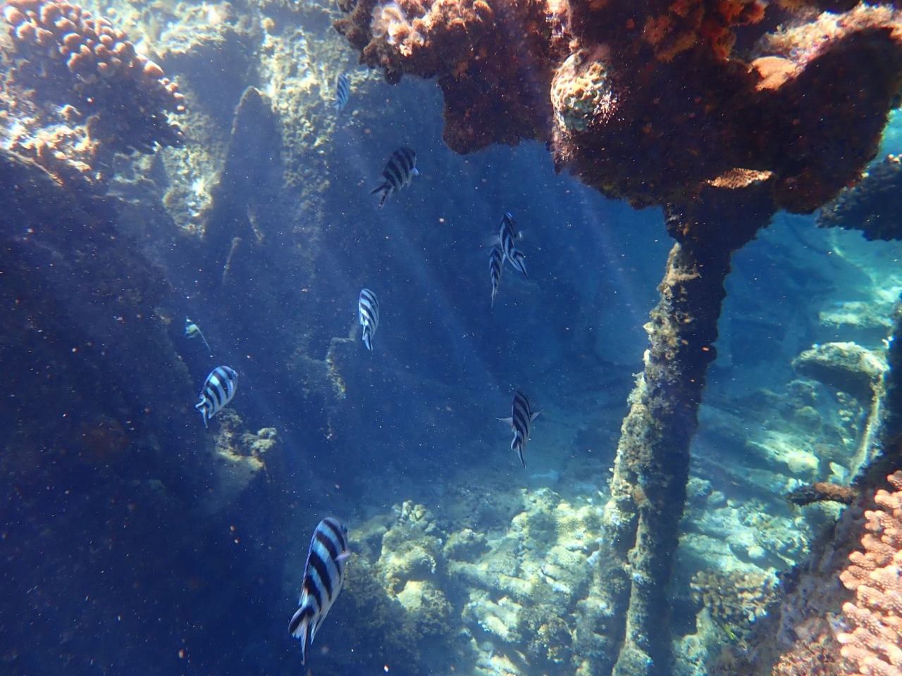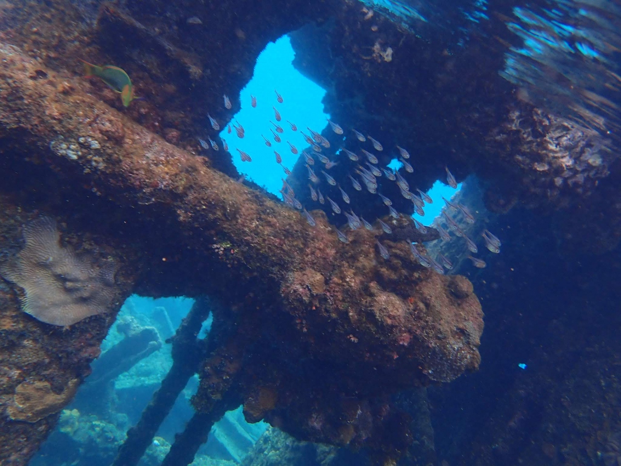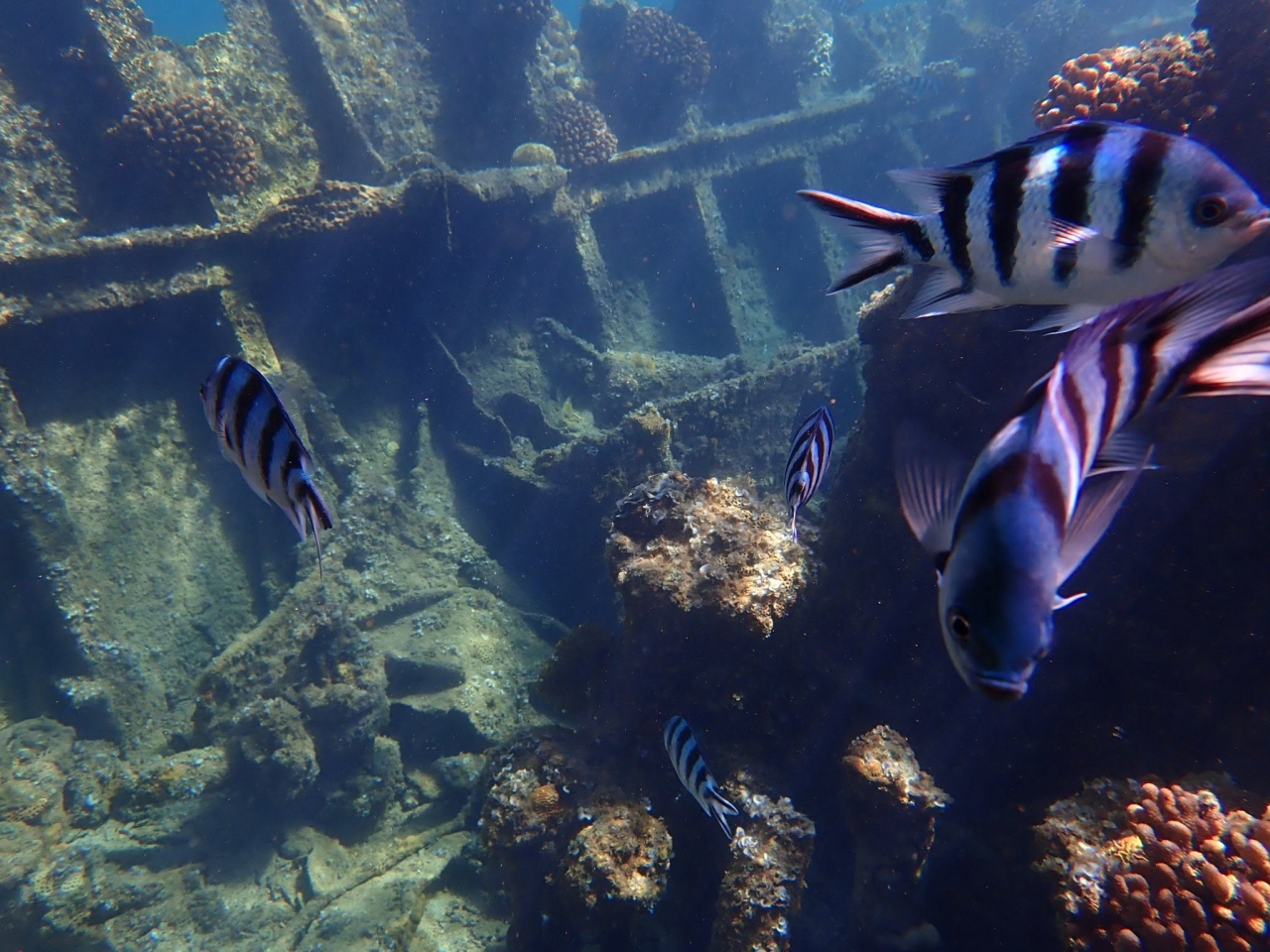 沈船のあたりは水の透明度も高く魚影も濃い、お勧めのスポットです。