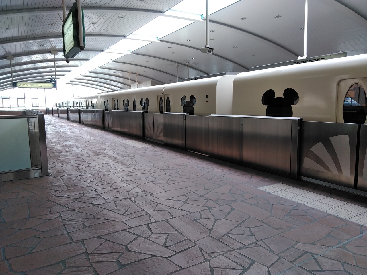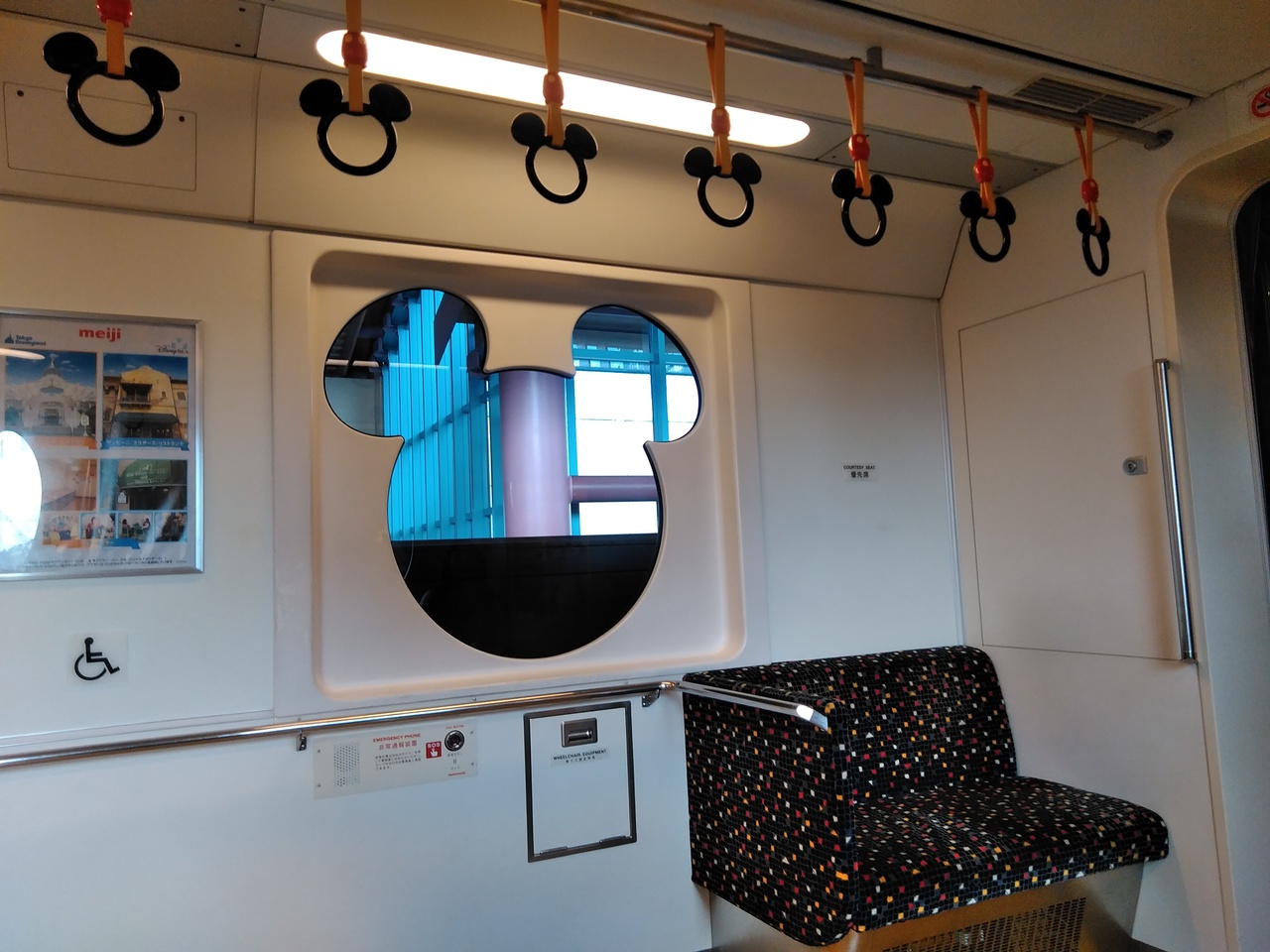 ディズニーランド、イクスピアリ、ホテルなどを結ぶモノレールです。車内もディズニー仕様なので、乗っているだけでわくわくします。ミッキーの形の窓から外を眺めると、下から手を振ってくれるディズニーランドのスタッフの姿が見えました。こういうのが嬉しいですね。