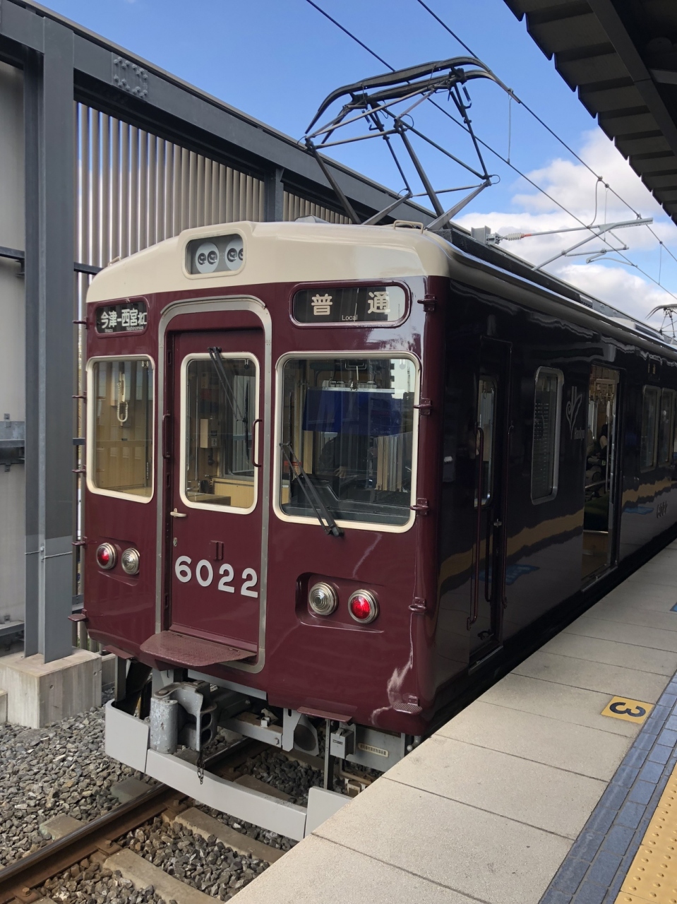 今津から西北は3両で走ってます。これの西宮北口駅改札が一番西宮ガーデンズに近くなっています。