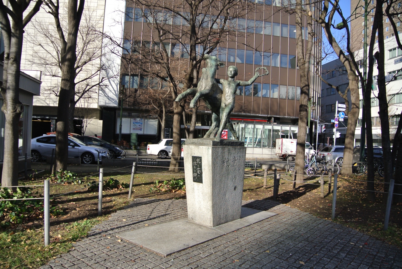札幌は各場所に銅像がたくさん建っている印象がありますが、大通り公園にも多くの銅像があって、この「牧童」もそういった銅像のひとつです。銅像は一時にまとめて作られたのではなく、ひとつひとつ寄贈されていったみたいですね。この像は伸びやかでやさしい感じがします。