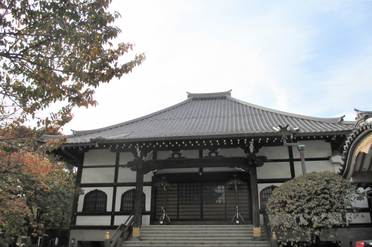 立派な山門をくぐった先の本堂は、お寺さんらしいなぁと感じさせる、落ち着きのある佇まいです。創建は寛永7年(1630年)とのことですから、この辺りに次々とお寺さんが造られた中の1つということになります。境内には、本堂の左手に毘沙門天堂があり、その横には小さな竹駒稲荷尊がありました。