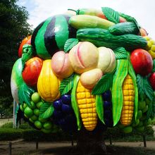 臨港パークの一角には、公園を彩るモニュメントがいくつかあって、このフルーツツリーもその一つ。色鮮やかなフルーツに野菜までもが豊かに実った不思議な木。平和への願いも込められた作品のようですが、そういわれるとそれを感じなくもない。いろんなものを受け入れる国際都市、横浜の懐の深さかなとも思います。