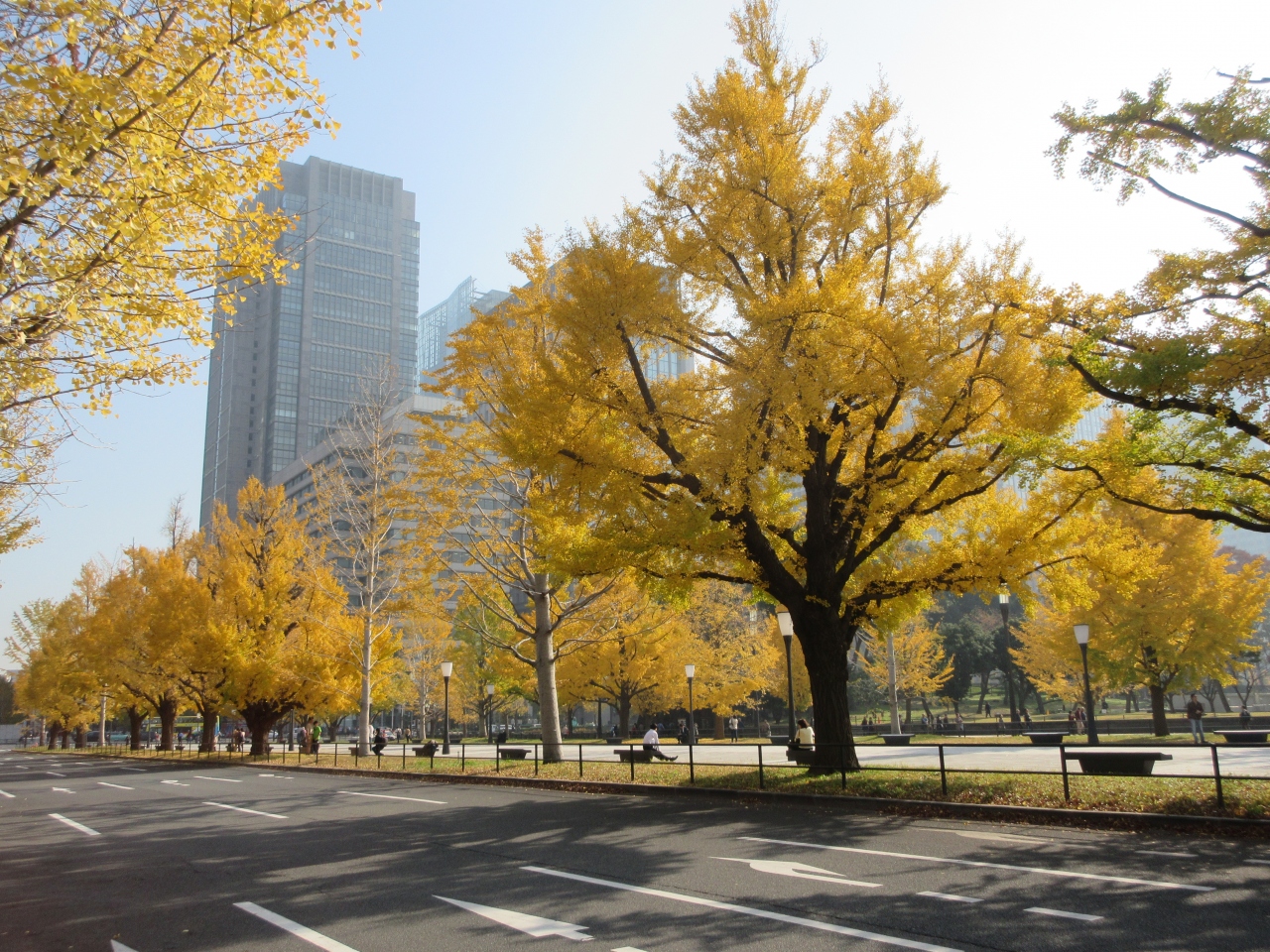 皇居東御苑を散策したのち、東京駅に戻る際に通りました。中央の歩行者用道路の両側と車用道路には黄色く色づいたイチョウ並木が形成され、多くの人が写真を撮っていました。東京のイチョウ並木というと神宮外苑が知られていますが、ここのイチョウ並木も大変美しかったです。神宮外苑ほどの高さはありませんが、並木に囲まれた歩道の散歩もとても気持ちよかったです。イチョウが紅葉する時期に東京駅周辺を訪れた時は、ぜひ散策してみてください。