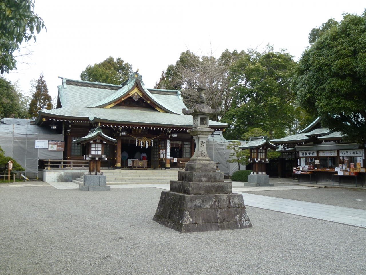 水前寺公園内にあるので、有料になります。参拝が目的の人は可哀そうな気もします。石段の階段を登ると鳥居、くぐると中央に参道があり境内は広い砂利できれいに整備されています。右手には社務所、奥に社があります。ちょうど神主さんと巫女さんもいてラッキーな気分にされました。入り口付近に、長寿の水があり有名らしいです。一口いただきました。