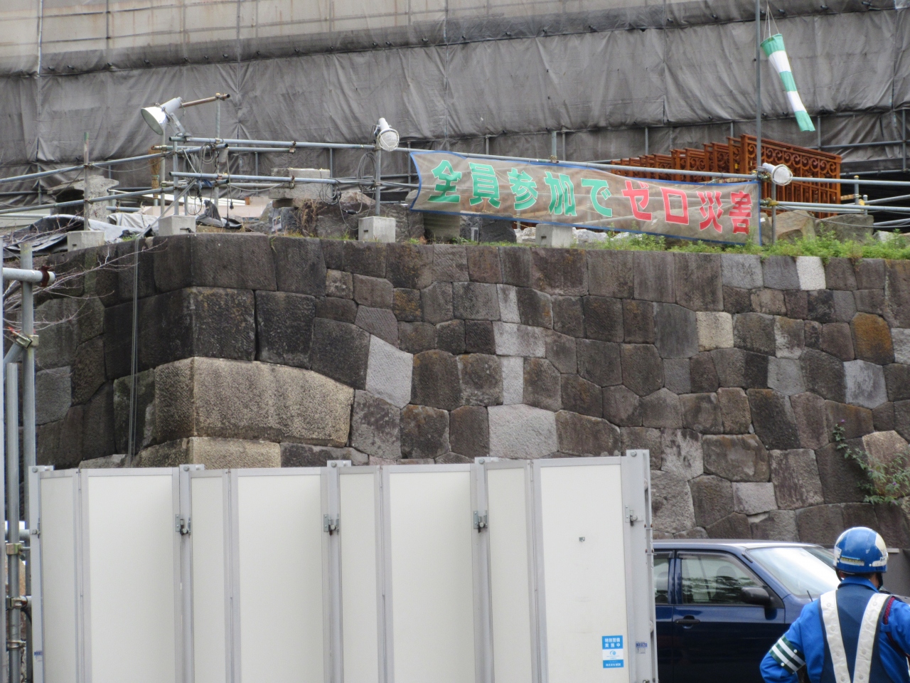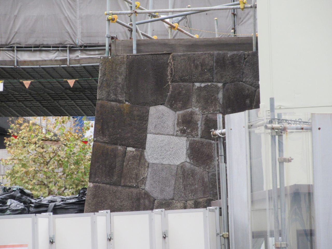 日本橋川に架かる常盤橋そばの工事中の一画内にあります。江戸と浅草を結ぶ外郭正門だったところです。工事フェンスに常盤橋門の説明が貼られています。渡櫓の石垣をフェンス越しに見ることができるだけで、近寄ることはできません。江戸城の大手門につながる門ということから城の外郭の広さを実感できるところです。工事が終了したら近くで見てみたいものです。