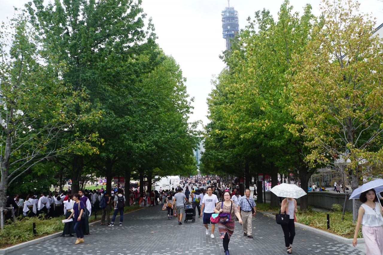 みなとみらい地区でどこがメインストリートになるか。意見は分かれると思いますが、グランモール公園 いちょう通りもその候補の一つ。見通しが良くて、ランドマークシティとかクイーンズスクエアとかの買い物の後にもちょこっと寄りやすい。この日も大勢の人が集まっていて、公園を歩くみたいに寛いでいました。