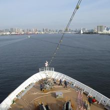 にっぽん丸で小笠原諸島を訪れて帰ってきたときに、東京湾へ入り羽田空港が見えその隣にある城南島海浜公園も洋上から見学することが出来ました。
