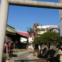 境内には大きな木の上、半分以上が切断されてしまったものがあり、お稲荷さんも拝殿の横に鎮座していました。