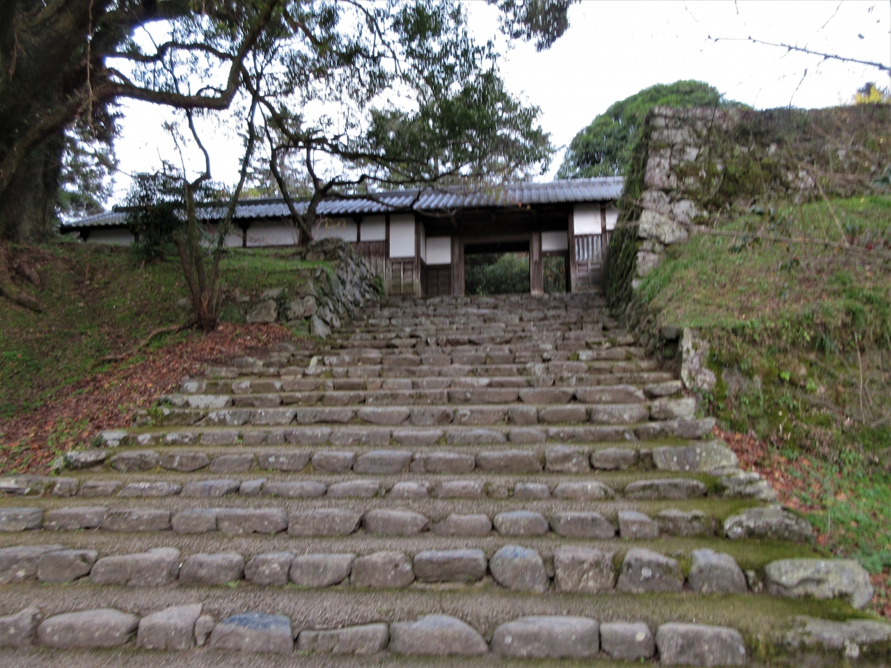さらに進むと秋月城の正門にあった瓦坂があります。瓦が埋め込まれていました。