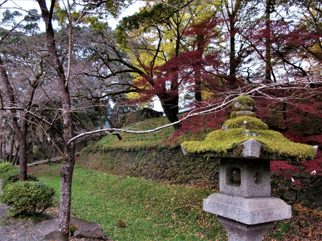 桜の名所 杉の馬場を通り黒門などから城址に上がると広場があります。紅葉が楽しめます