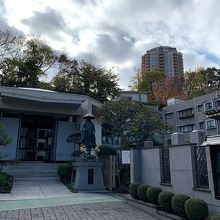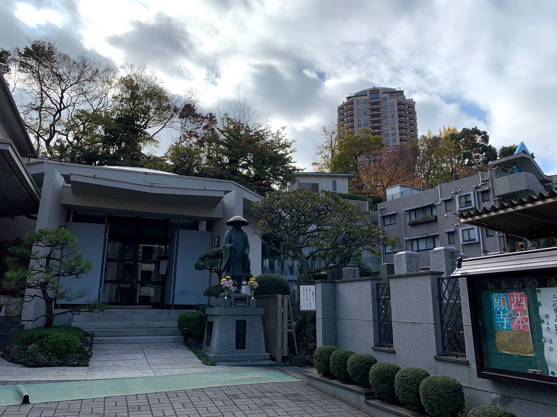 お寺自体に特徴的なものはさほどなく、境内にある親鸞上人像と、その背後に見える「元麻布ヒルズ」が印象に残りました。
