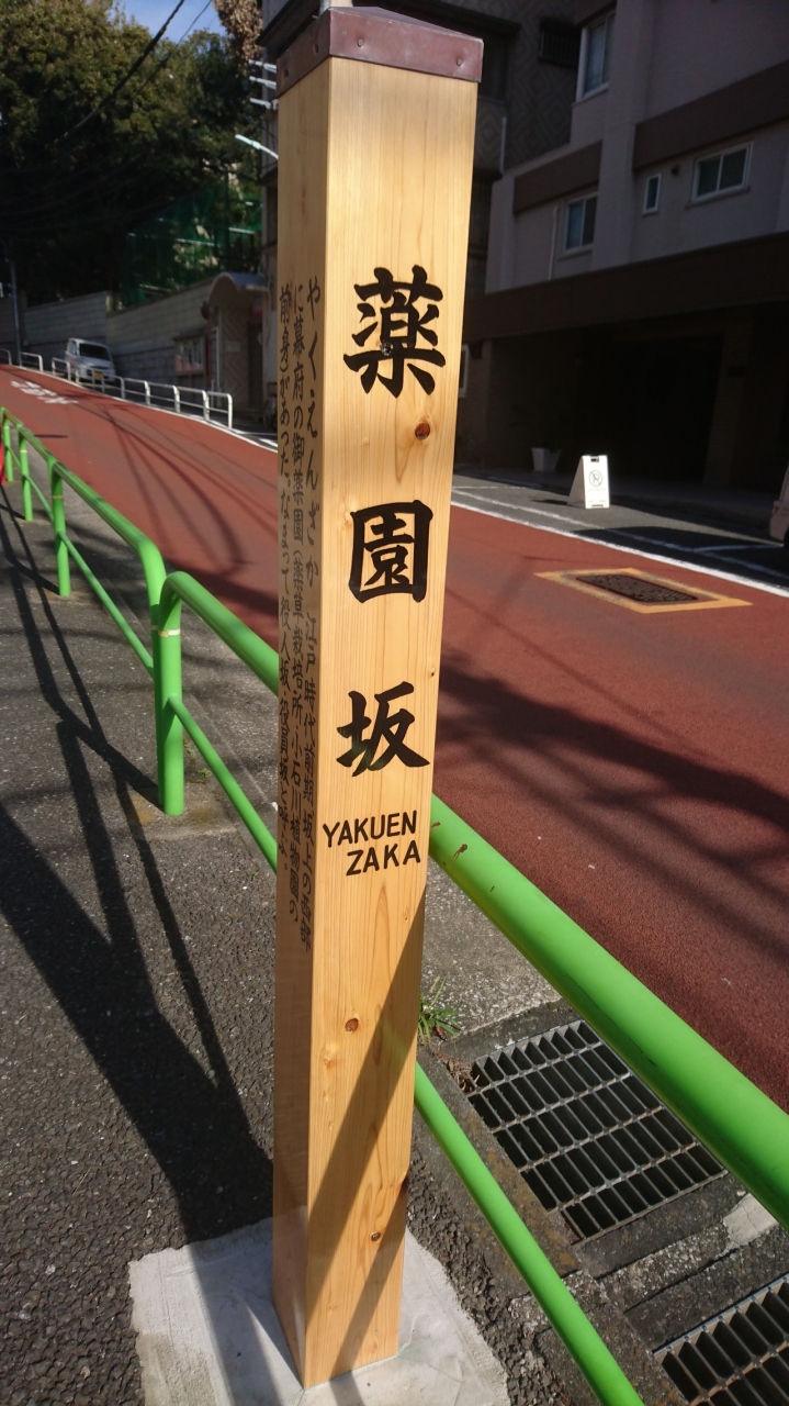 明治通りの四の橋交差点から北に向かって上っていく薬園坂を通りました。新坂や絶江坂と並行して上る坂で、かつて坂上に小石川植物園の前身である幕府の御薬園があったことから薬園坂と呼ばれたそうです。今では住宅地の中にある坂ですので、かつての雰囲気を知ることはできませんでした。