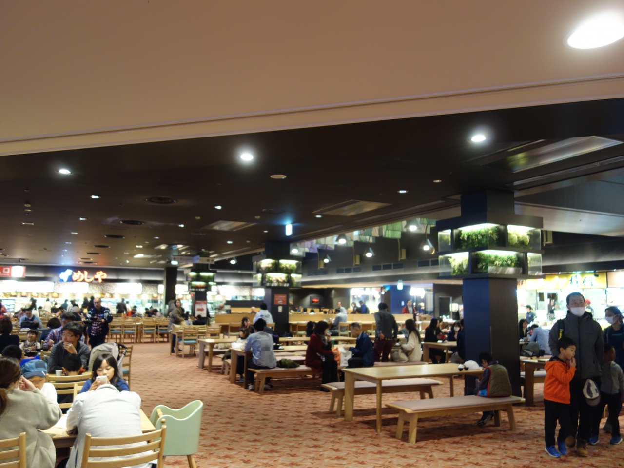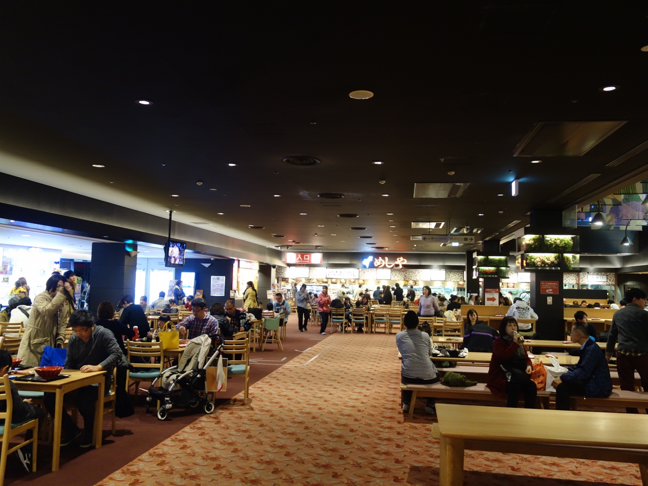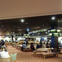 とても広くてゆったりした空間です。テーブルとテーブルの間が広いせいでしょうか。ピクニック気分で食事が出来ます。落ち着けます。お店もたくさんあり,選択に迷うほどです。ほかのお店で買ってきて,ここで食べる手もあります。いいところです。