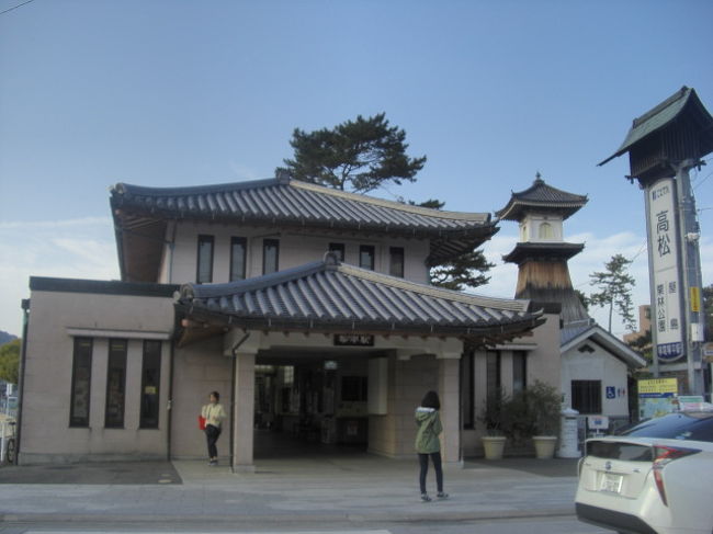 琴電の終着駅です。JRに比べると徒歩で5分くらいこんぴらさんに近いです。こんぴらさんへは結構歩くので琴電で行く方がオススメ。あちらでは随分あるきますから。あの階段を上がるのはちょっと自信がない。。と言う人は500段目までタクシーで行くことができます。1700円くらいです。駅前にはタクシーが止まっていますし、いなければ駅の公衆電話に電話番号が4つ書いてありますよ。