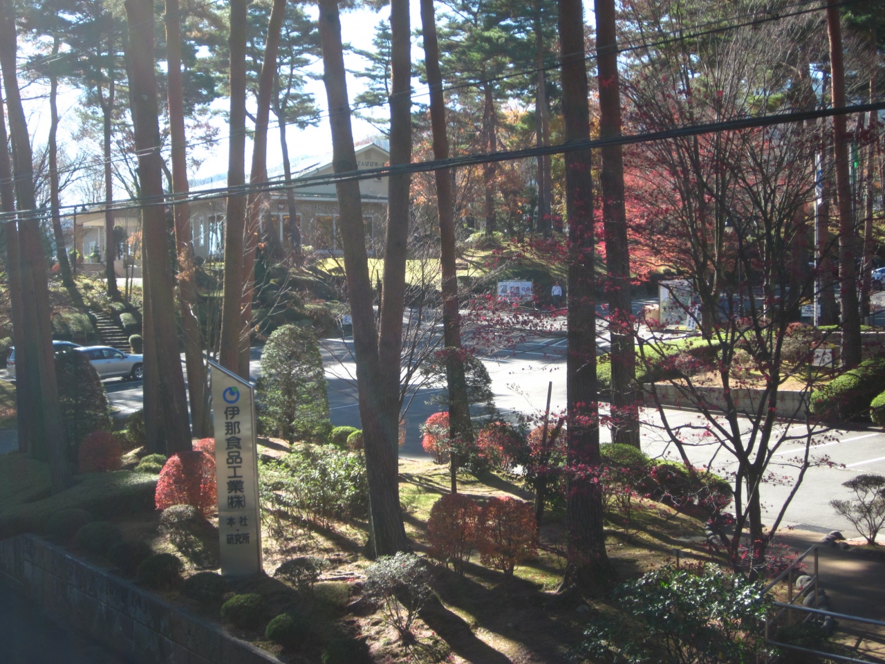 緩やかな林の斜面に造られた伊那食品工業(株)という企業が営む施設で、広大な敷地内には本社・研究室に工場と、観光客が利用出来る売店やレストランなどが一緒に在る複合施設なんですね。