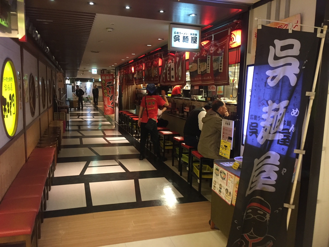広島バスセンターがあるそごうと同じビル7階にアクアグルメタウンがあり、その一角にあります。通路の脇を利用したお店でカウンターのみです。麺の硬さなど注文できます。スープは醤油とんこつで、麺が細いのが特徴のようです。