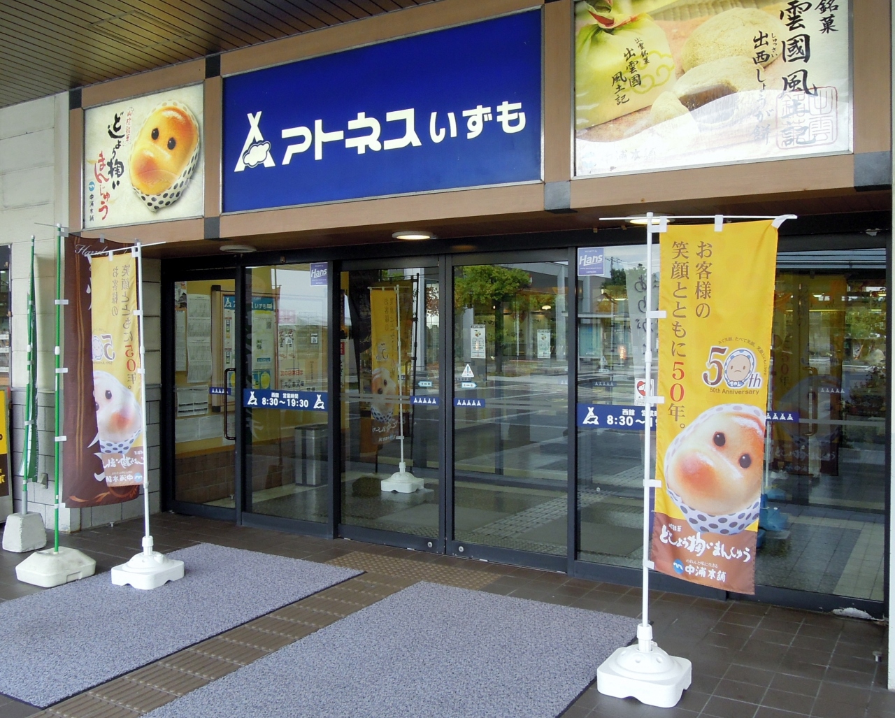 JR出雲市駅の駅ビル量販店だ。駅から一畑電鉄の電鉄出雲市駅に向かう動線にあるが、JR駅に近い方は土産物が並び、電鉄駅に近い方は生活用品を扱っている。駅前に土産物ショップがないせいか、土産品スペースは充実している印象を受けた。
