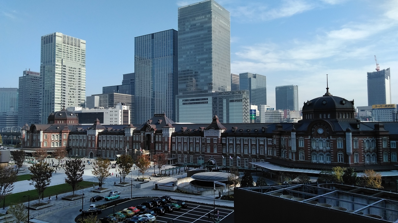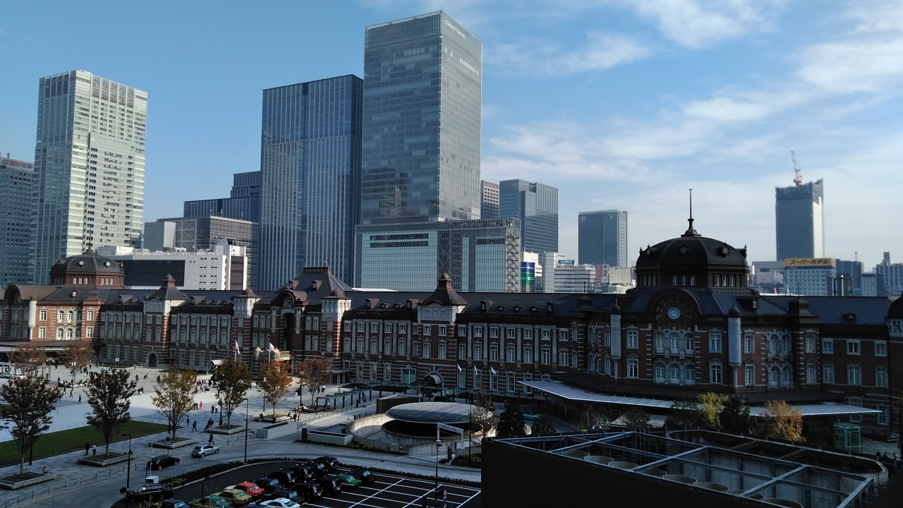 昨年もクリスマス・ツリーをここで見たのを思い出して、立ち寄った。ことしは少しシンプルな感じだが、立派なツリーが展示されている。ランチ・タイムだったので、5階にあがり、小岩井農場の直営店でランチした。その5階に展望の場所があった。なんと東京駅前の見事な景色が展開していた!KITTEの上もいいが、こちらは正面からで、すばらしい眺望だ。