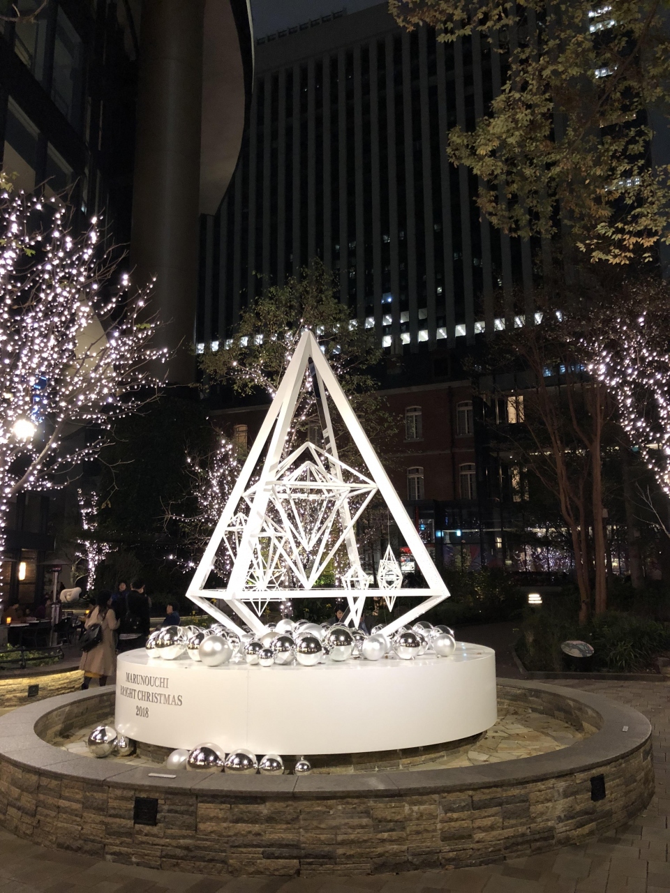 丸の内中通りのイルミネーション鑑賞と合わせて、こちらのイルミネーションも鑑賞してきました。全体的に白を基調としていて、広場の中央にはちょっとデザイン的なツリー(多分)が展示してありました。規模が小さめで派手さはないものの、これはこれでなかなか良かったかなといった印象です。