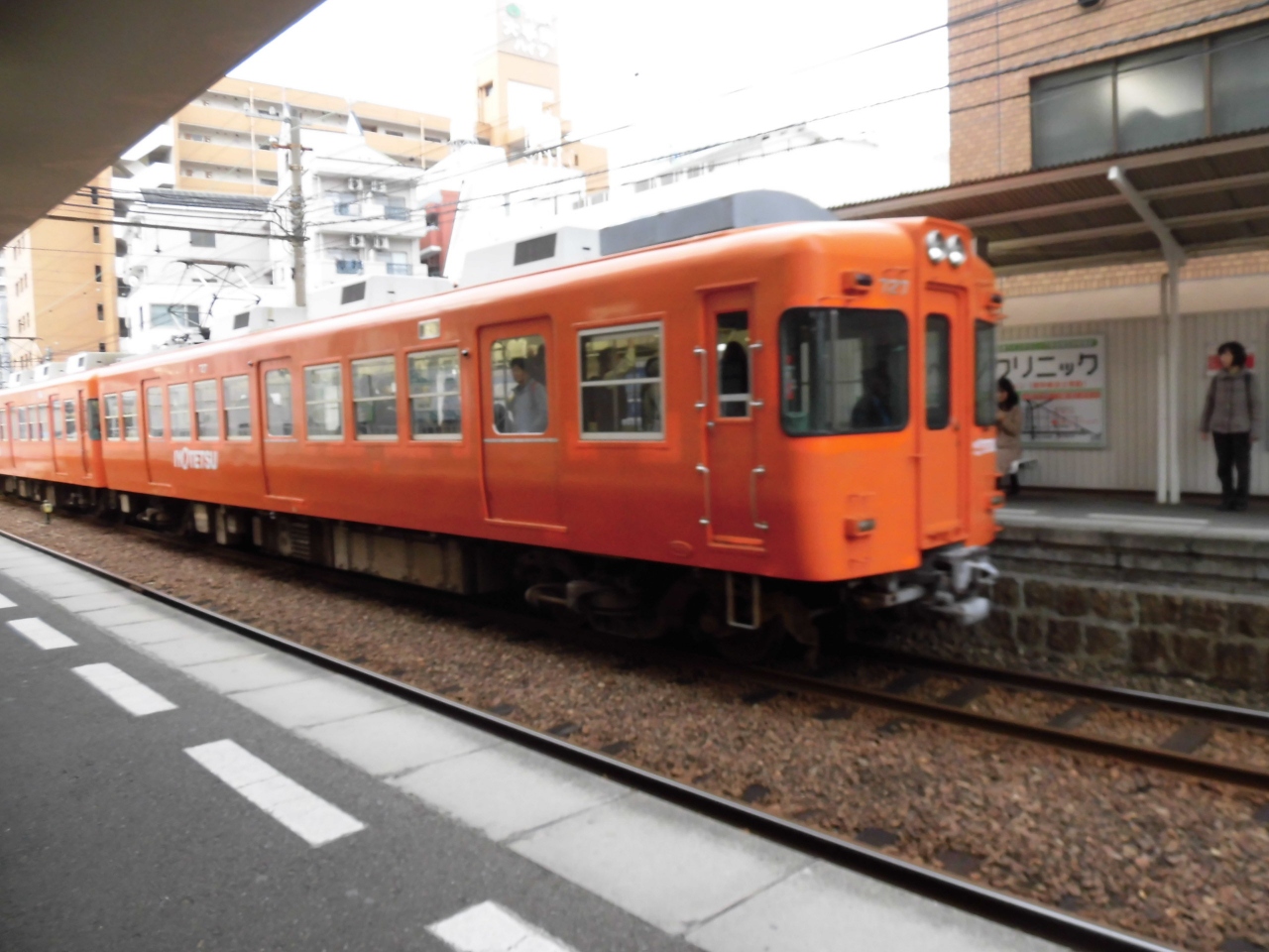 伊予鉄道高浜線に、大手町駅から松山市駅まで1駅乗りました。160円で路面電車と同じ値段でした。朝の通勤時間帯だったこともあり、思った以上にお客団が乗っておられました。この区間は路面電車でも行けますが、郊外電車の方が早く行けます。車窓観光には路面電車の方がオススメです。