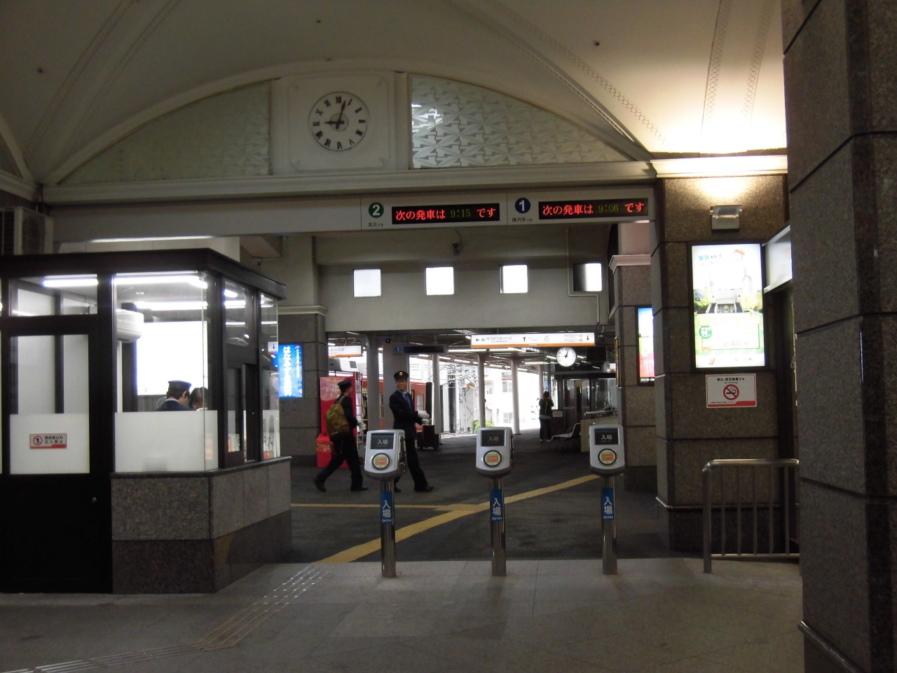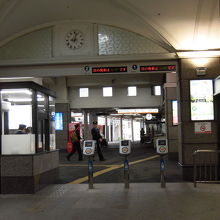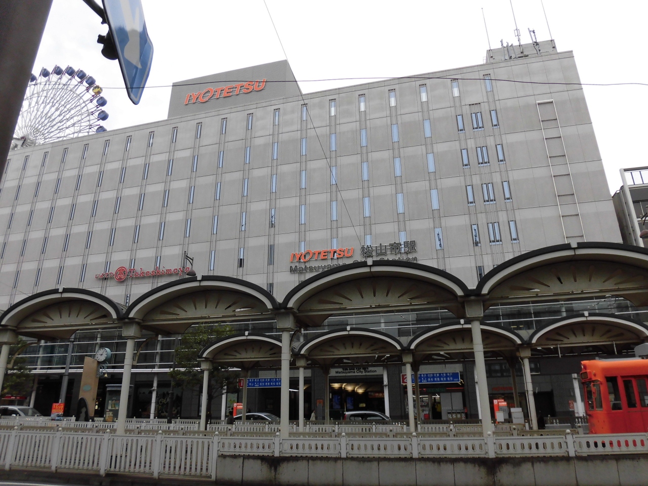 松山市の中心地にあり、伊予鉄道の路面電車、郊外鉄道、路線バス、高速バスなどの中心地です。駅ビルは、いよてつ高島屋になっており、ショッピングや飲食店もたくさんあり、とても便利でした。JR松山駅とは対照的ですね。