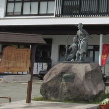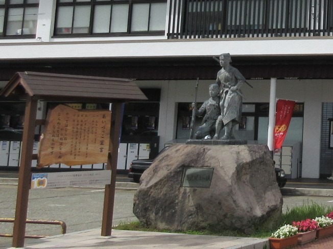 会津若松駅前に出ると、循環バスの離発着するロータリー手前に、飯盛山の方に向かって一人は身を乗り出し、もう一人はその横で膝をついた姿をした若者二人の像が立っていました。これが白虎隊の像で、ふたりともドラマに出てくるような憂いを含んだ美男子の姿をしていました。