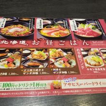 浜松町駅直結の世界貿易センタービル地下にあります。北海道の味を味わえる居酒屋として有名ですが、ランチタイムも営業していました。ランチの丼や定食、どれも北海道を意識したメニューでボリューム満点、お手頃に北海道の味を楽しめます。