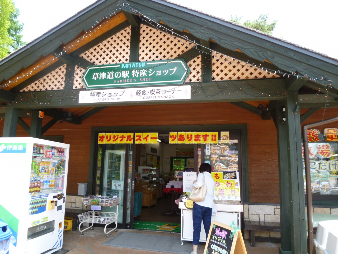 道路を挟んで広い敷地にある道の駅です。草津に向かう国道292号沿いで山の中で、散策できるように遊歩道や道路を渡る屋根つき歩道橋もあり、しっかり整備されています。店内も地元特産品が多く売っていて、見ているだけでも楽しいです。草津の帰りで、食事は済んでいたので食べなかったけど、レストランもあり、舞茸のメンチや天麩羅もあり次回は食べたいと思います。