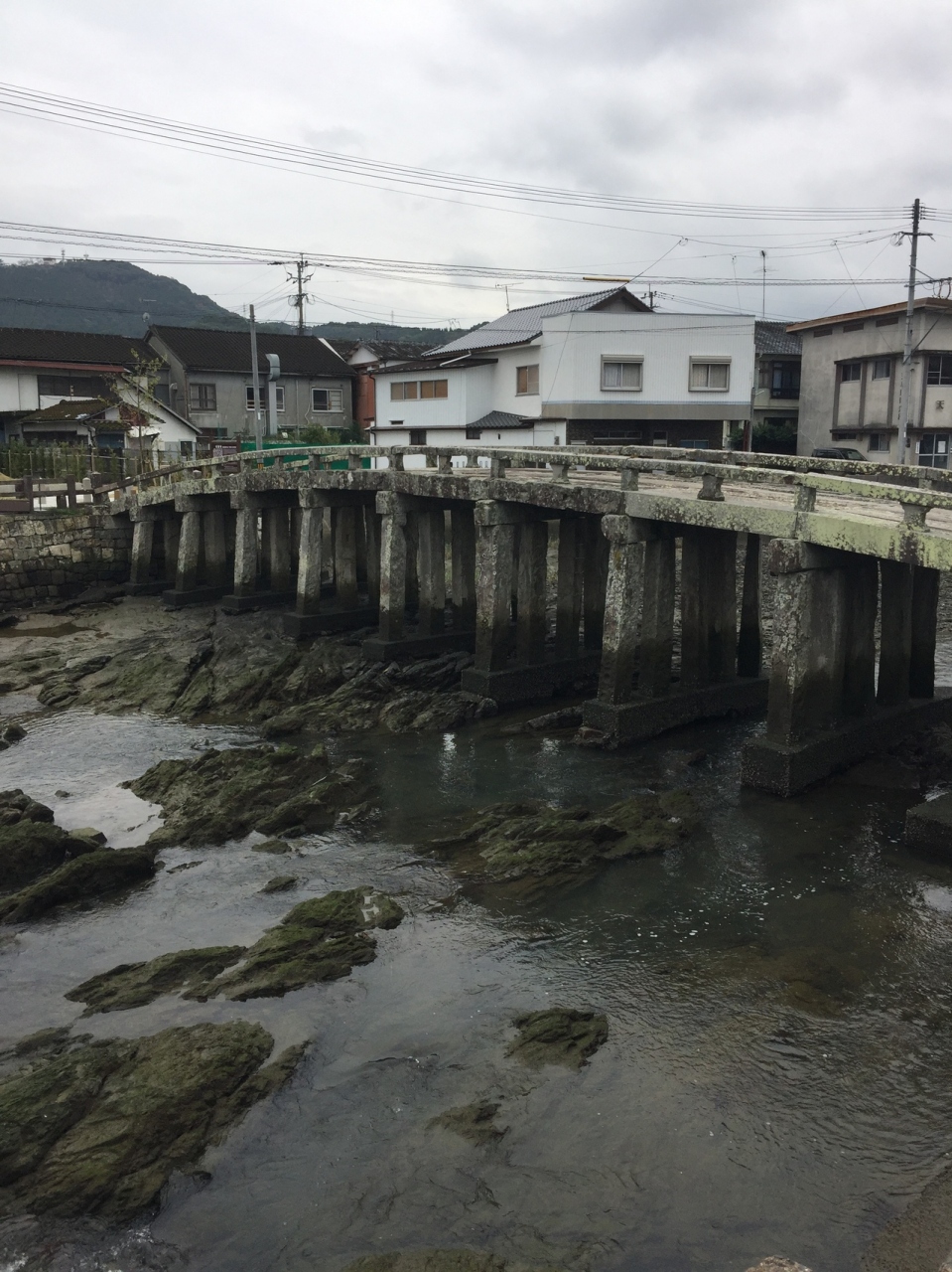 天草観光のガイドブックには大抵載っています。本渡の中心部からすぐの所にあり、石造りの小さな橋です。橋脚も含めて全て石で出来ていますが、根元?の部分などをよく見るとズレている箇所もあり、渡るのに少し躊躇してしまいました。