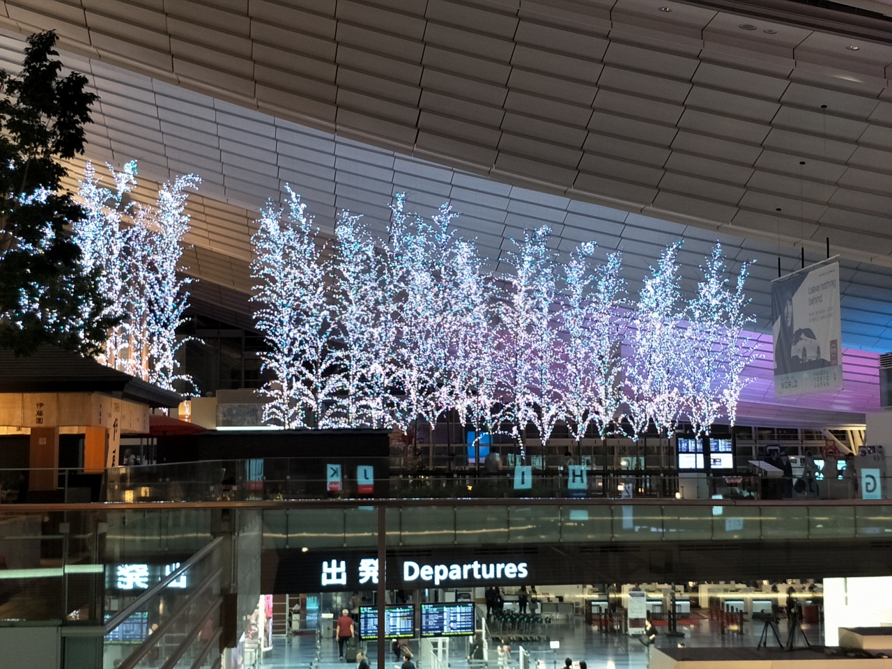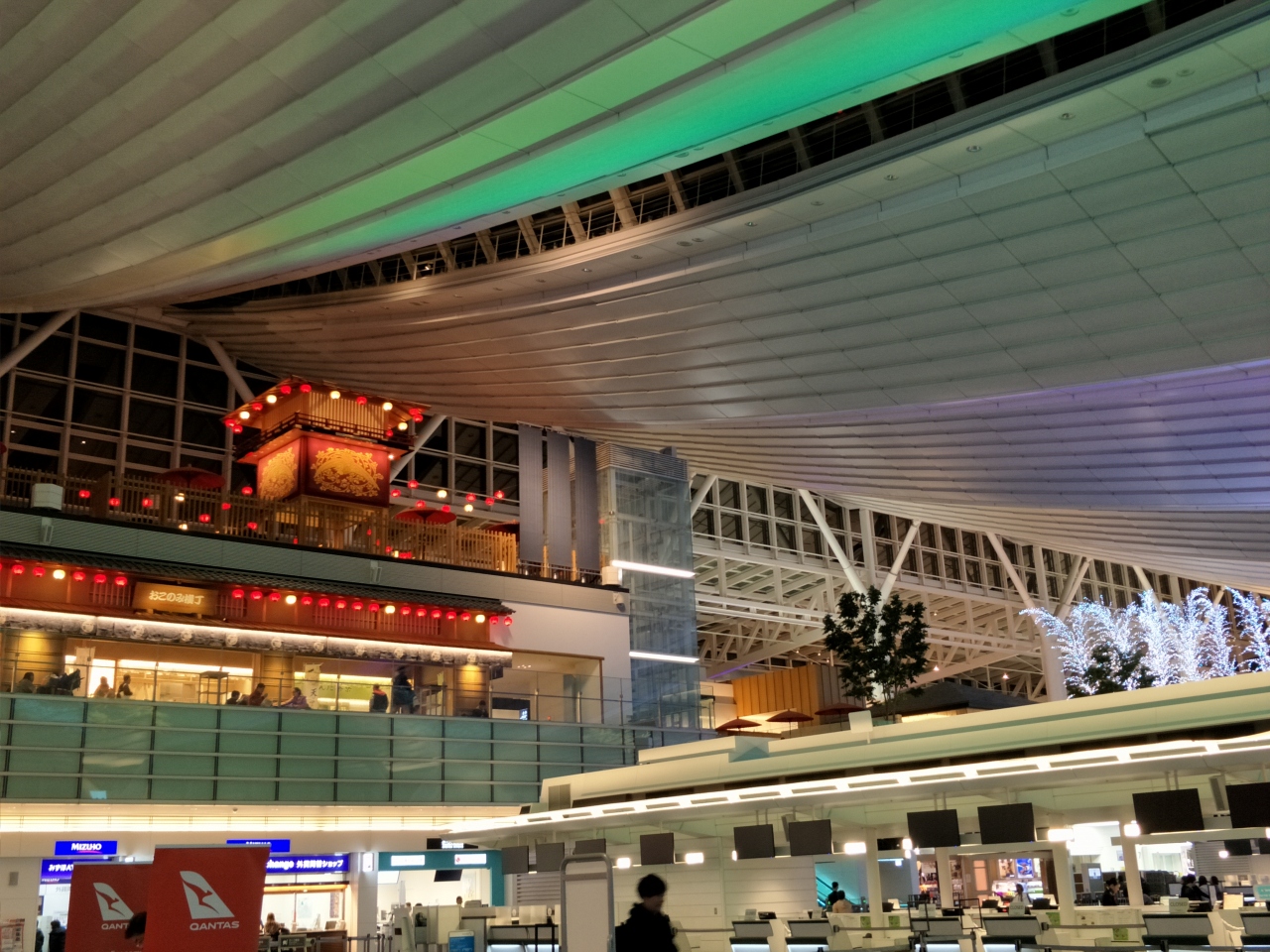 (海外からの一時帰国のため)国内で免税で買った物の書類(パスポートに張り付けられた物)は荷物検査のすぐあとにある税関のカウンターで渡します。