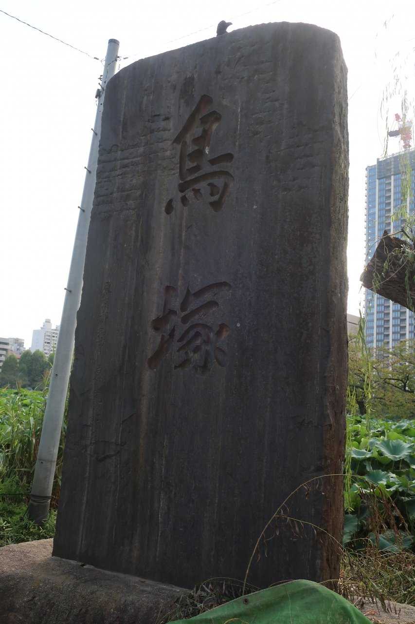 上野の不忍池に浮かぶ弁天島の周りには様々な塚・碑が建てられています。鳥塚もその一つです。表面には大きな字で鳥塚、裏面には鳥塚の由来が刻まれています。昭和37年に東京の食鳥肉の販売業者団体が鳥供養の為に建立したもので、弁天島にある他の塚と同じ趣旨の塚です。弁天島にはこんな塚もあるの?と思う塚があり、鳥塚もその一つです。