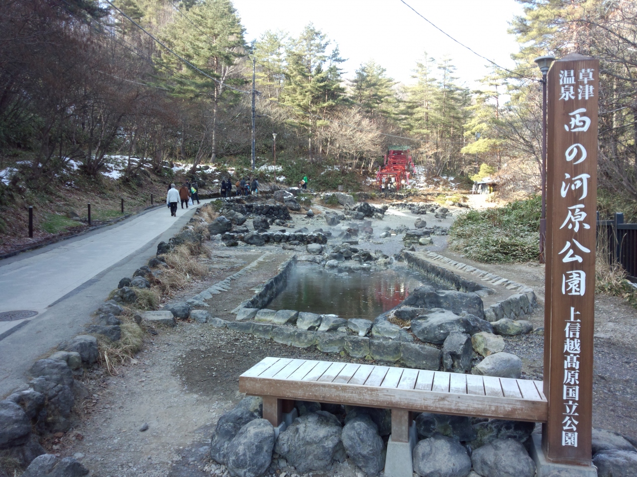 温泉が湧いて川のように流れ、その周辺を整備して公園にしています。